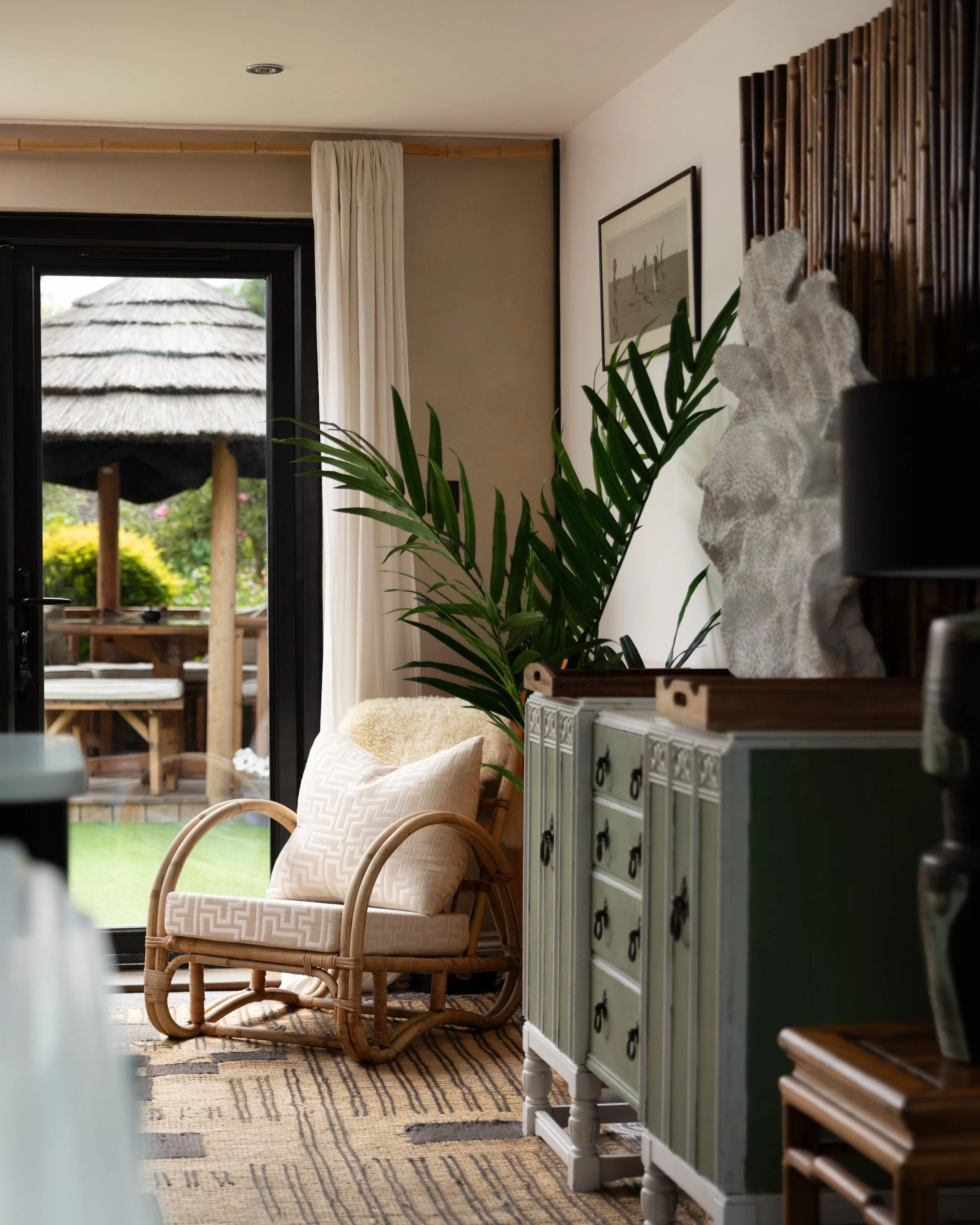 A tour of the house aims to take you on a worldwide adventure from Indonesia to Japan, Mexico to Morocco. Each room has its own palette and personality, yet they are united through a cinematic style that weaves the house together with a single design statement.